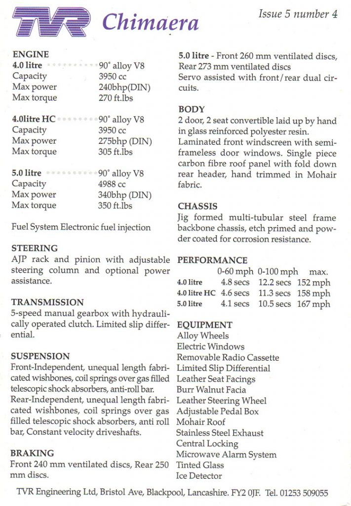 TVR Chimaera Brochures